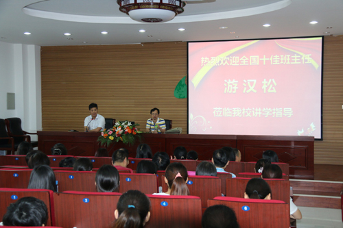 为进一步提高班主任素质,增强班主任队伍的合力,8月26日上午,安阳市第十中学邀请教育专家,全国十佳班主任、武汉市第一初中的游汉松老师到学校进行了“只有差异,没有差生”、“职业情怀”的专题讲座。