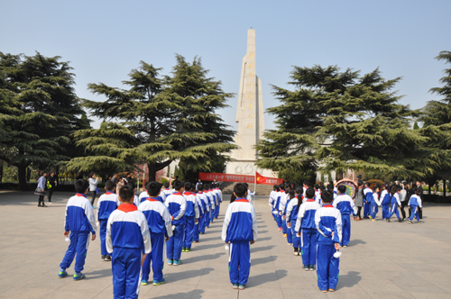 [三中] 为牢记历史,缅怀革命先烈,增强学生的使命感,在清明节来临之际,4月1日下午,市三中开展了以“缅怀先烈,做有为青年”为主题的烈士陵园扫墓活动。学校领导和高一年级全体师生600多人参加了此次活动。同学们怀着崇敬的心情,排着整齐的队伍步行来到市烈士陵园,共同缅怀革命烈士,以告慰烈士之英灵。在烈士纪念碑前,学校领导和学生代表向革命烈士纪念碑敬献了花圈,师生共同低头默哀1分钟,以示对烈士最崇高的敬意。随后全体同学进行了宣誓:要缅怀先烈,发扬他们的爱国主义精神,努力学习,为祖国的建设贡献自己的一份力量。最后同学们集体参观了安阳革命史纪念馆,并向烈士墓地敬献了小白花。整个扫墓活动三个多小时,收到了良好效果。清明节期间,广大师生怀着崇敬的心情,纷纷登录中国文明网和央视网,在“网上祭英烈”互动平台祭奠英烈,告慰烈士之英灵。他们或鞠一次躬,或献一束花,或留一段深情的祭奠心语,用各种的方式传递着自己对英烈的崇敬和深切缅怀。“清明节”期间,市三中开展了“告别陋习、文明祭祀”主题教育活动。通过宣传栏、黑板报、班会、校园广播等形式,教育大家要抛弃陈旧观念和陋习,积极开展鲜花祭祀、网上祭祀、树祭,争做“文明祭祀、低碳生活”的践行者、先行者。