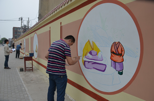为弘扬传统文化,传递社会正能量,生动展示社会主义核心价值观等内容,市三中组织学校美术老师在学校东侧临向阳路的围墙上亲手绘制公益宣传广告。