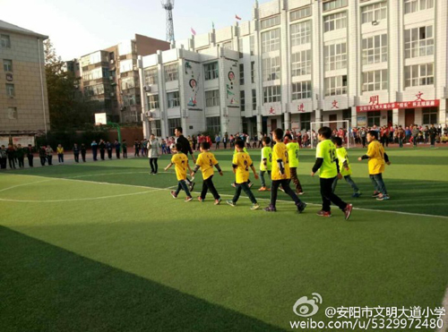 11月9日,安阳市龙安区文明大道小学首届“校长杯”校园足球联赛在学校操场开赛了。陈文会校长莅临现场并且为本次足球联赛开了球,又为队员们鼓劲加油,场上队员激情四射,场下观众呐喊助威,这就是校园足球的魅力。希望通过比赛,让孩子们从足球比赛中去享受足球,热爱足球,充分发挥校园足球的育人功能,全面提升学生的综合素养。进而孩子们更加热爱足球这项运动,促进孩子们的健康成长。