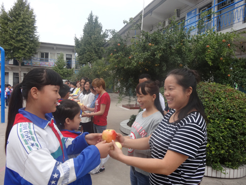 9月4日,市南漳涧小学举行了“颂师德 感师恩”为主题的隆重升旗仪式。学生们把“平安果”送到每位教师手中,真诚的愿每位教师健康、平安、快乐;激情的师德演讲内容充实、语言生动、感情真挚。活动的开展弘扬了尊师重教的传统美德,培养了广大学生尊师爱师的情感。